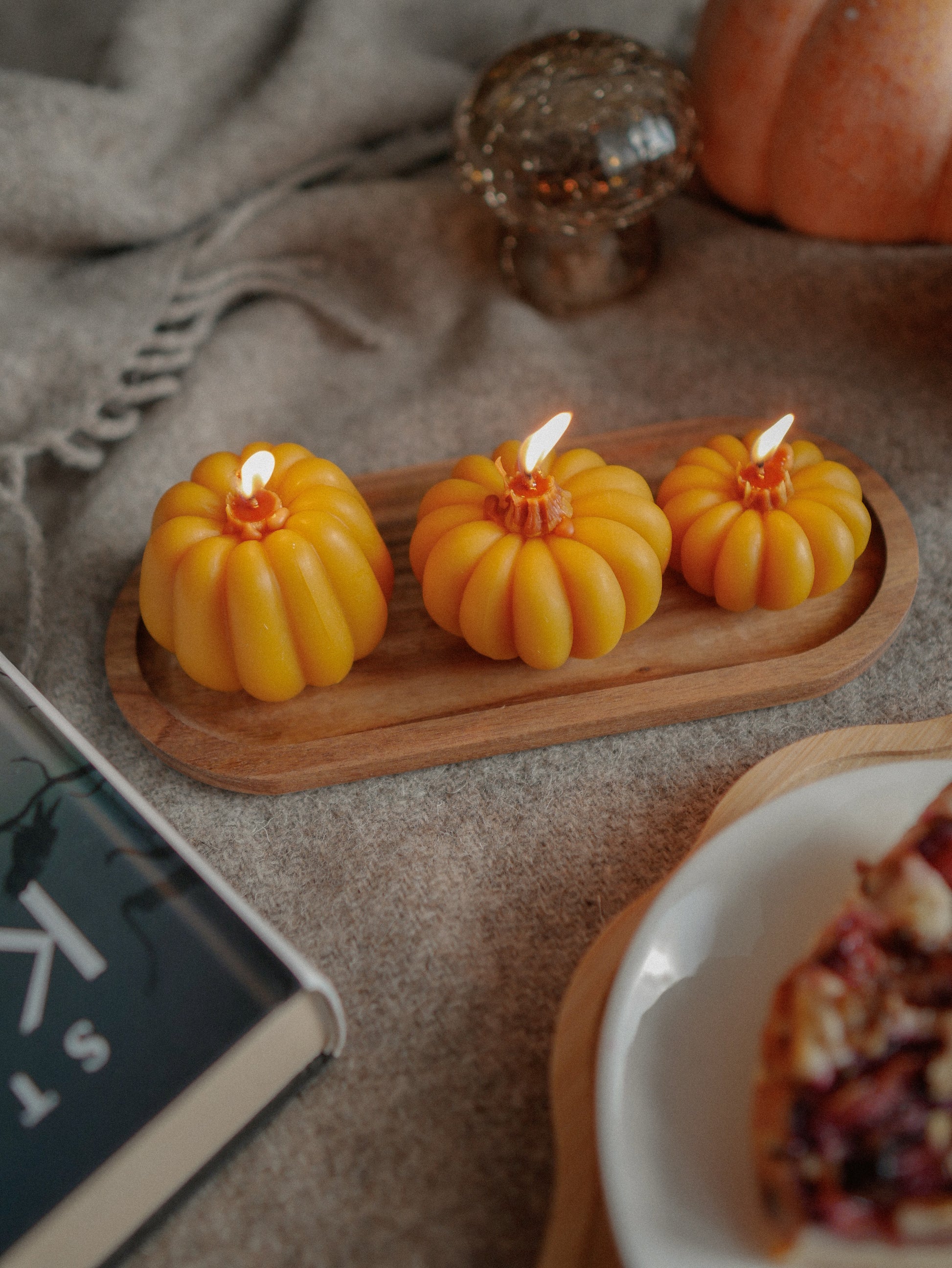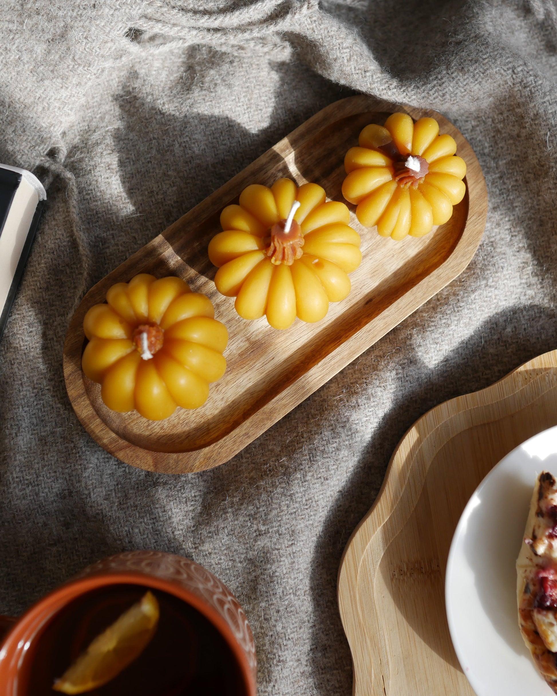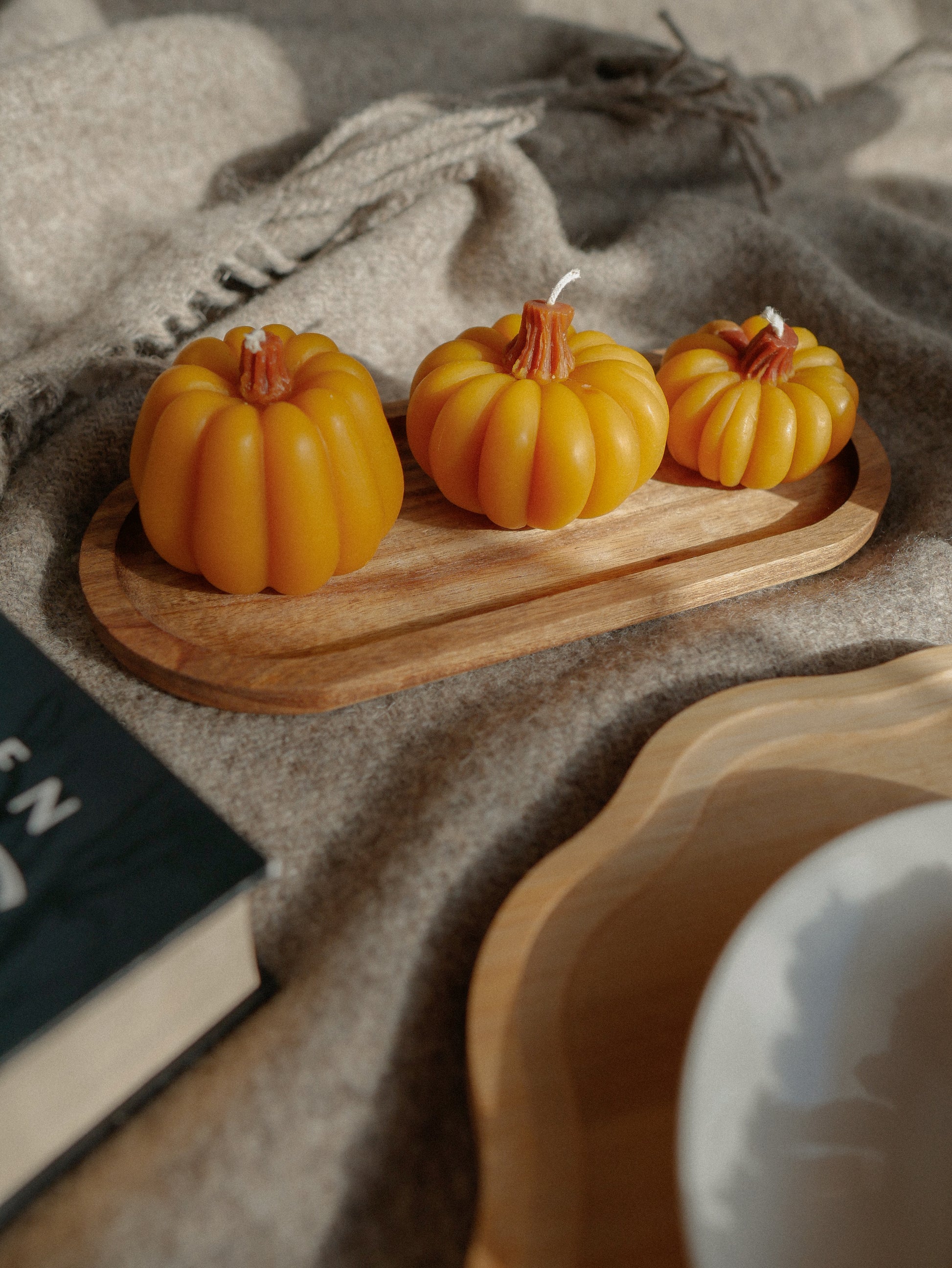 Świętuj piękno jesieni z naszym zestawem 3 ręcznie robionych świec dyniowych z czystego wosku pszczelego. Każda świeca ma inny rozmiar (możesz kupić także osobno), a razem tworzą zachwycającą jesienną kompozycję.